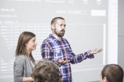 In the second part of the evening, Prof. Dr. phil. Dipl. theol. Gerd Döben-Henisch introduced the “emerging mind project”. As a research project in the field of artificial intelligence it is set up as a system to produce artists along the way. To do so, environments are to be created that through tasks and interaction with the “external world” are to help minds emerge. Gerd Döben-Henisch explained the plan on how to set up this system, the interfaces it will have, and interaction it will allow. Trying to tackle two unsolved problems, namely creating an artificial mind and making computers create art, this raised quite a lot of questions that we discussed in the meeting.