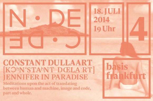The Dutch artist Constant Dullaart work explores contemporary modes of access, visibility and (mis)representation associated with global spread of information technologies. The title of his talk references the first ever Photoshop’d image: Jennifer in Paradise. Along with online transparency, hidden information and the multi-tiered infrastructure of the web, the talk is about Dullaart’s thoughts on the act of translating between human and machine, image and code, part and whole.